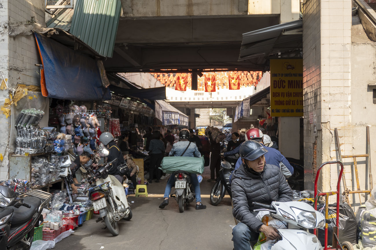 Arriviamo ad Hanoi nel tardo pomeriggio. Per la strada c’è un casino d’inferno. Un inferno di macchine, motorini e pulmini da quindici posti. Passiamo sopra al grande fiume. Più ci avviciniamo al centro più le macchine si diradano lasciando il posto a stormi di motorini scoppiettanti. Sui motorini di Hanoi non vai mai da solo. Sei sempre almeno in due, spesso in tre, non di rado in quattro. Se proprio devi andare in giro da solo allora trasporti qualcosa, chessò una bombola, un frigorifero, un cottage norvegese. I bambini vengono incastrati sui manubri, messi a panino fra i genitori o legati al portapacchi. Non sono dotati di casco, ma hanno dei simpatici copricapi morbidi con le orecchie chiusi da una visiera di plexiglas. Altro dettaglio fondamentale: in motorino si va in ciabatte.